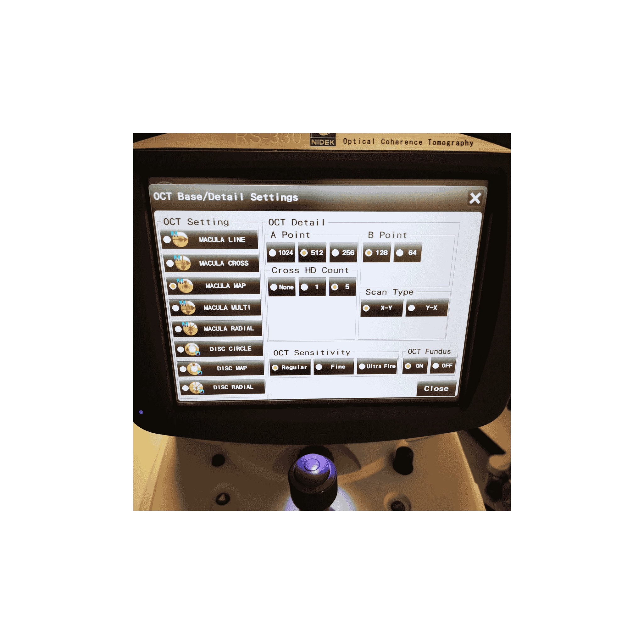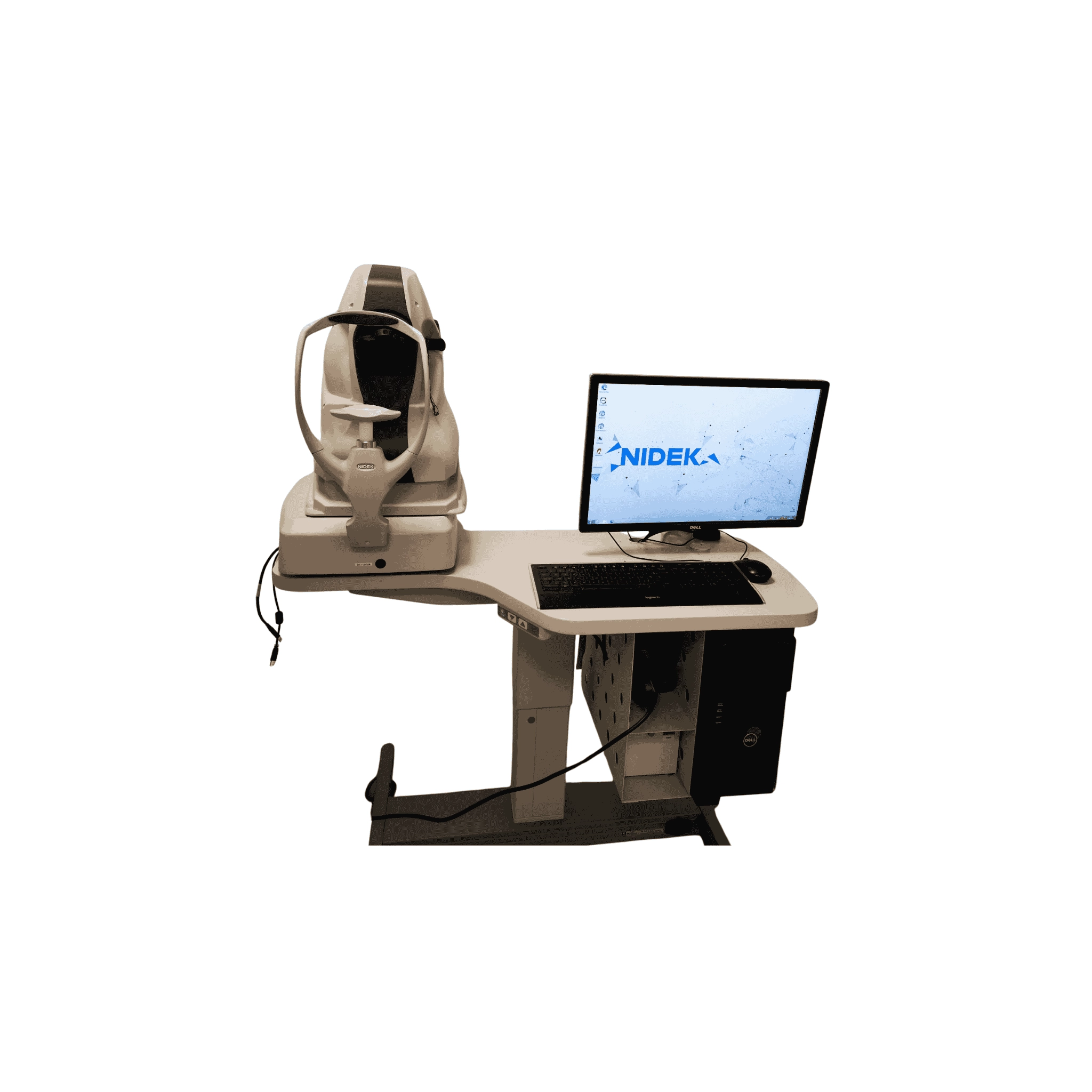 The OCT Nidek RS-330 Duo is an ophthalmic diagnostic system that combines optical coherence tomography (OCT) with an integrated fundus camera to capture high-definition images of the retina and the posterior segment of the eye. The device is designed for non-mydriatic use with simultaneous acquisition of OCT images and fundus photographs, facilitating the analysis of the macula, optic disc, and retinal structures in a single procedure. It features automatic 3D tracking, alignment, focusing, and automatic shutter release to simplify image acquisition and improve clinical efficiency.